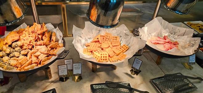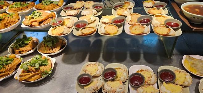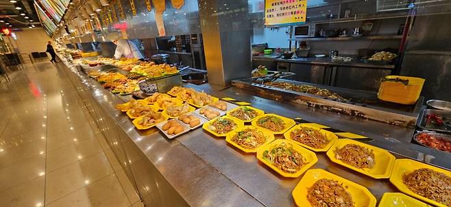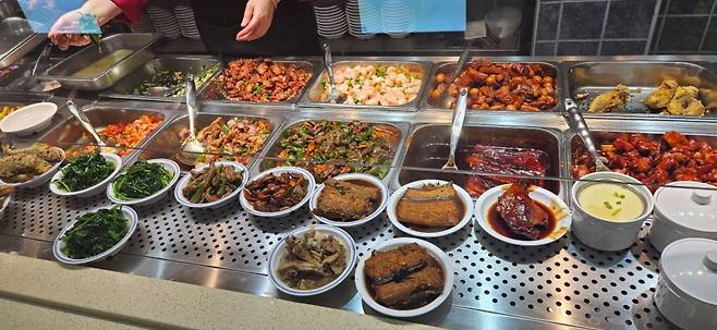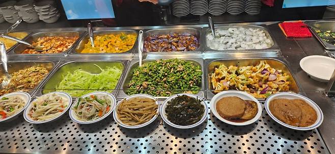 반찬을 담아서 캐셔가 계산하는 방식의 식당이 많습니다.