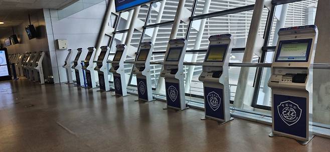공항에 들어서면 외국인은 지문 등록을 해야합니다.