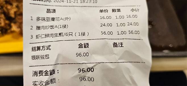 96위안(18000원)입니다.
