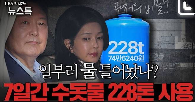 그는 “(관저는) 다수의 경호 인력과 관리 인력이 24시간 상주하고 근무하는 공간”이라며 “수돗물 사용은 생활용수뿐만 아니라 조경수 관수, 관저 주변 청소 시에도 수돗물을 사용할 수밖에 없다”고 설명했습니다.