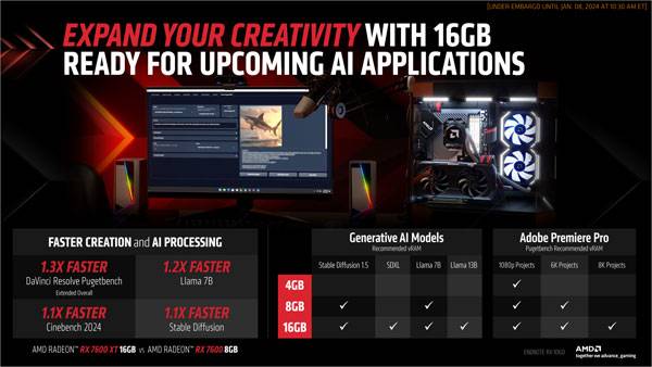 AMD는 갈수록 VRAM 의존도가 높아지는 게임 환경에 처한 메인스트림 게이머를 위해 라데온 RX 7600 XT 16GB 모델도 발표했다.