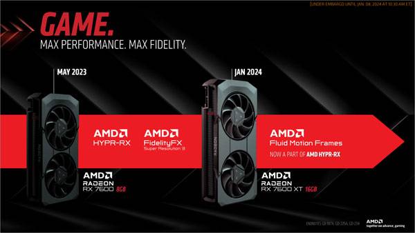 또한, 지난해 10월부터 프리뷰 드라이버를 통해 제공되었던 AFMF(AMD Fullid Motion Frame)가 라데온 RX 7600 XT 16GB 출시와 더불어 라데온 소프트웨어에 정식 통합 제공된다는 소식도 발표되었다.