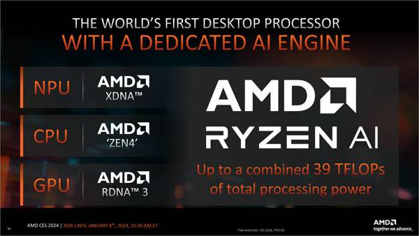AMD는 CES서 세계 최초의 AI 엔진 탑재 데스크탑 CPU인 라이젠 8000G 시리즈를 발표했다.