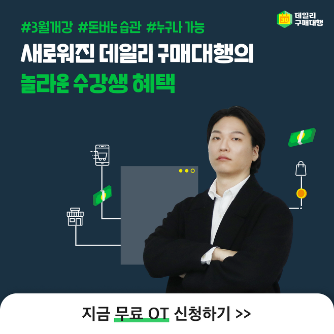 부지런히 따라만 가도 매출이 쑥쑥 오르는 데일리 구매대행. 머니루틴에서 모든 노하우를 배워 가시길 바랍니다.
