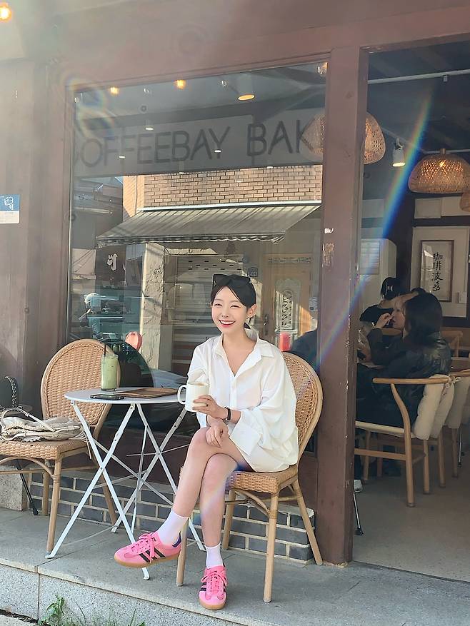 피부를 맑게 보이게 해주는 새하얀 색감 덕분에 햇살 아래에서도 얼굴 톤이 더욱 환해 보이죠.