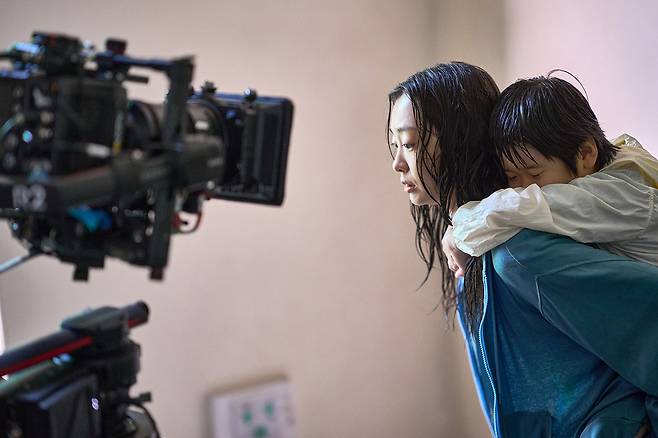 특히, 아들 자인(권은성)을 구하기 위해 물로 가득한 세트장에서 몸을 사리지 않는 그의 열연은 극한의 상황을 생생하게 전하며 몰입감을 한껏 끌어올린다. 인류의 희망인 안나와 자인을 탈출시켜야 하는 희조 역의 박해수 역시 진지하게 모니터링에 임하며 그의 뜨거운 연기 열정을 여실히 전한다.