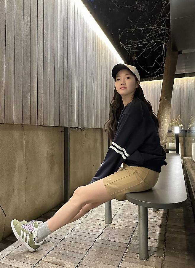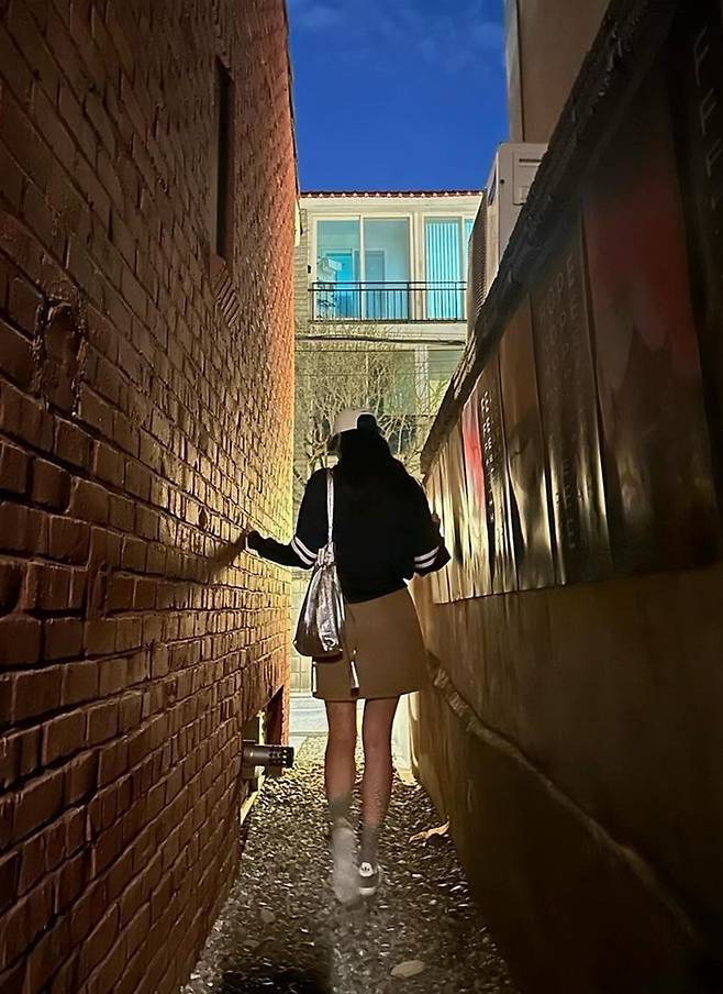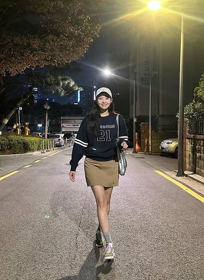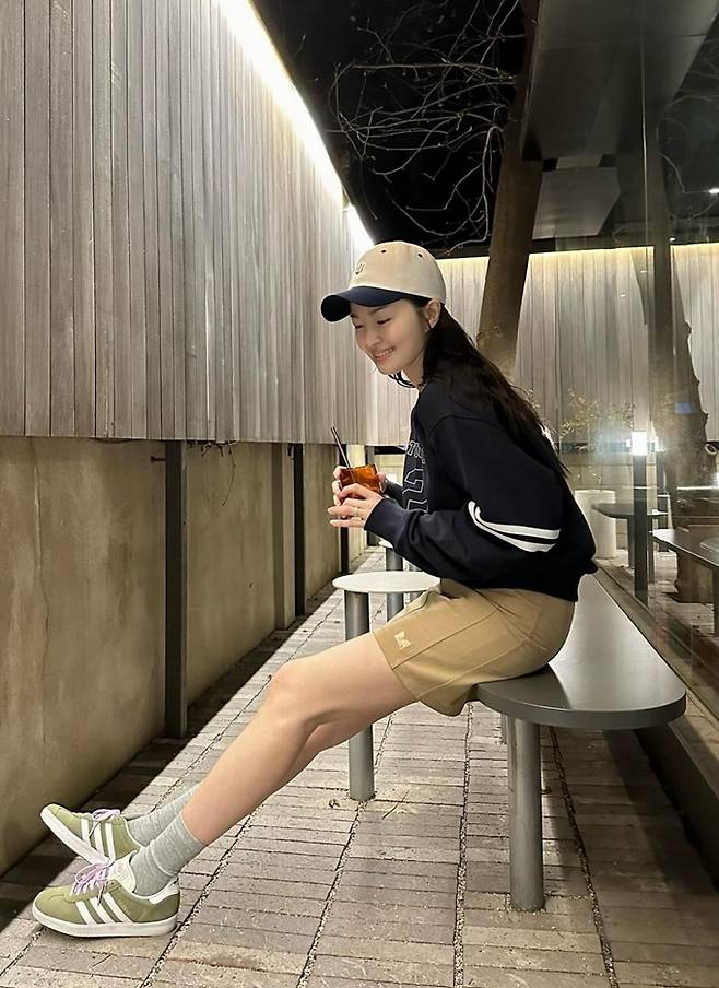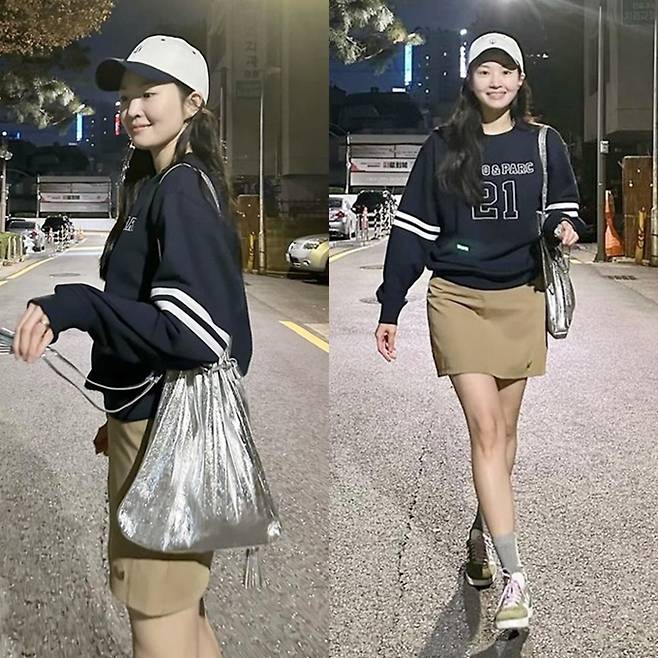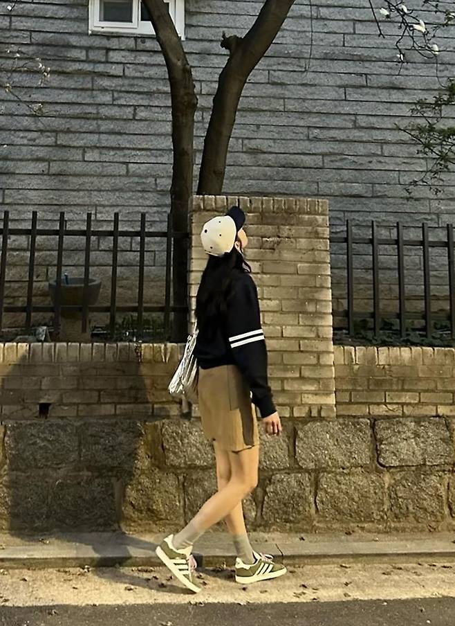 공개한 사진에서 류이서는 볼캡에 베이지 미니 스커트와 네이비 스웻셔츠의 가벼워진 주말 나들이룩으로 전진과의 데이트를 즐겼다.
