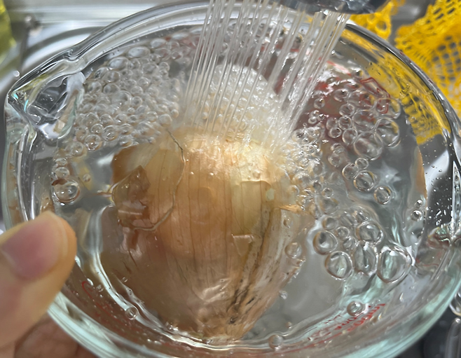 또한 물속에 양파를 넣고 껍질을 까면, 매운 성분이 공중으로 이동할 우려가 없어서 맵지 않습니다.