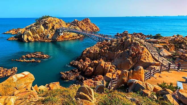 또한 육지와 바위섬이 철교로 연결되어 있어 바다 위를 걷는 듯한 경험도 가능하다. 파도 소리를 가까이에서 들으며 이동하는 이 구간은 공원 전체에서도 가장 인상적인 코스로 꼽힌다.
