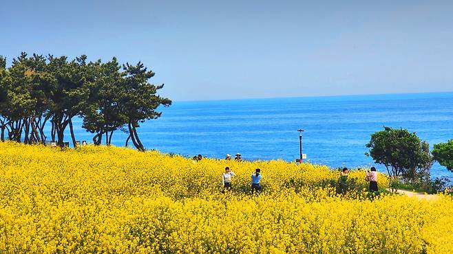 특히 4월과 5월 사이에는 유채꽃이 만개하면서 분위기가 완전히 달라진다. 바람에 흔들리는 노란 물결과 동해의 푸른 수평선이 겹쳐지며, 이 시기만의 특별한 풍경을 완성한다. 사진을 찍기 위해 일부러 찾는 방문객이 늘어나는 이유도 여기에 있다.