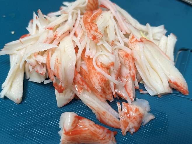 크래미는 잘게 찢어서 넣으세요. 크래미는 은근히 칼로리도 낮고 단백질 함량도 높습니다.