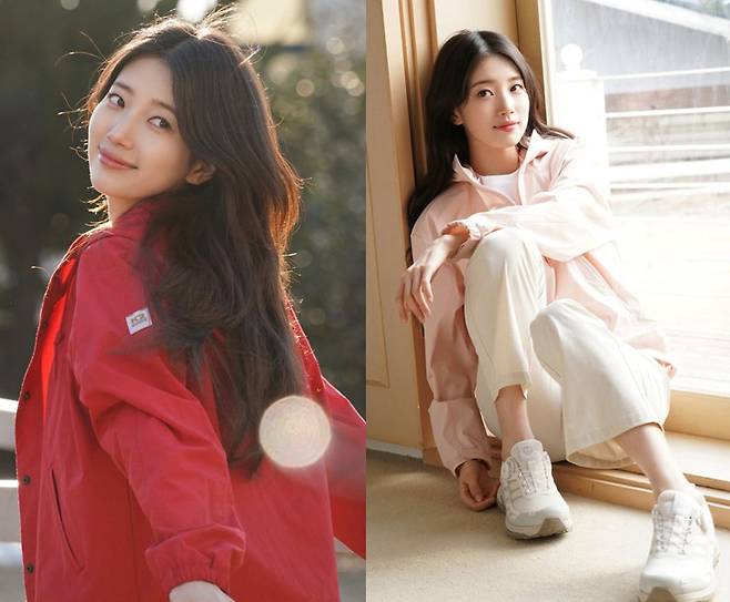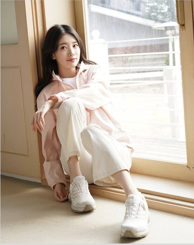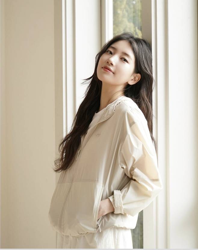 가볍고 실용적인 윈드브레이커에 화이트 팬츠를 매치해 편안하면서도 고급스러운 무드를 연출했으며, 특히 맑고 투명한 피부 톤과 어우러진 라이트 톤 스타일링은 수지 특유의 청초함을 더욱 돋보였습니다.