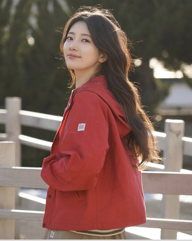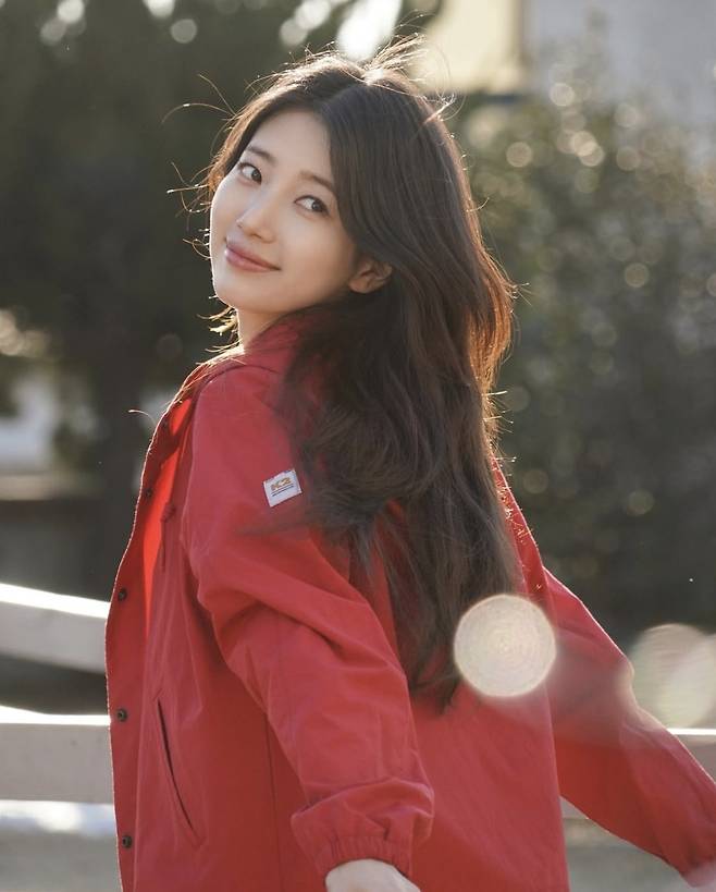 내추럴한 웨이브 헤어에 잔잔한 미소를 머금은 수지는 베이지·핑크·레드 컬러의 아우터로 산뜻한 봄 스타일링을 완성하며 눈길을 끌었습니다.