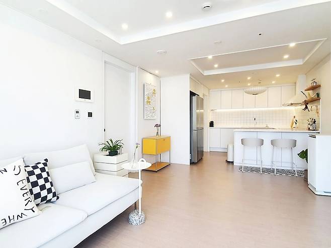 철거한 공간에 예쁜 모듈 가구와 액자를 배치해서 산뜻하게 연출해보았어요.