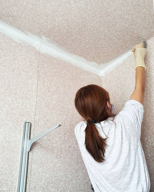 처음에는 셀프로 도전해보려 했지만, 프라이머 작업 후 바로 포기했습니다. 좁은 공간이라도 함부로 볼 일이 아니더라구요^^; 셀프페인팅은 엄청난 중노동이었어요. 다음날 바로 인테리어사장님께 추가 비용을 드리고 페인트 시공을 맡겼습니다.