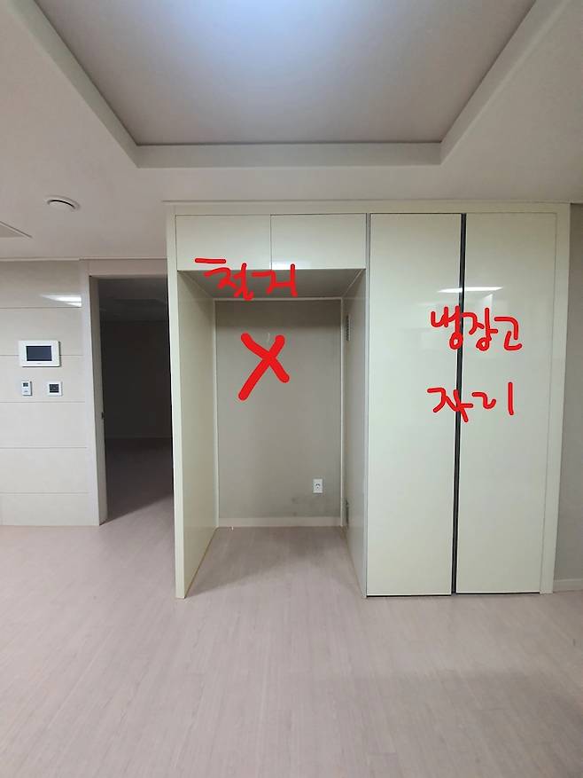 씽크대는 전체 철거 후 맞춤 가구로 제작하기로 했어요. 여기서 제일 핵심 포인트는 기존 냉장고 자리 가구를 철거하고 팬트리 공간이었던 곳을 냉장고 자리로 사용하기로 한 점입니다. 이게 25평이지만 30평처럼 보이는 저희집의 키포인트입니다.