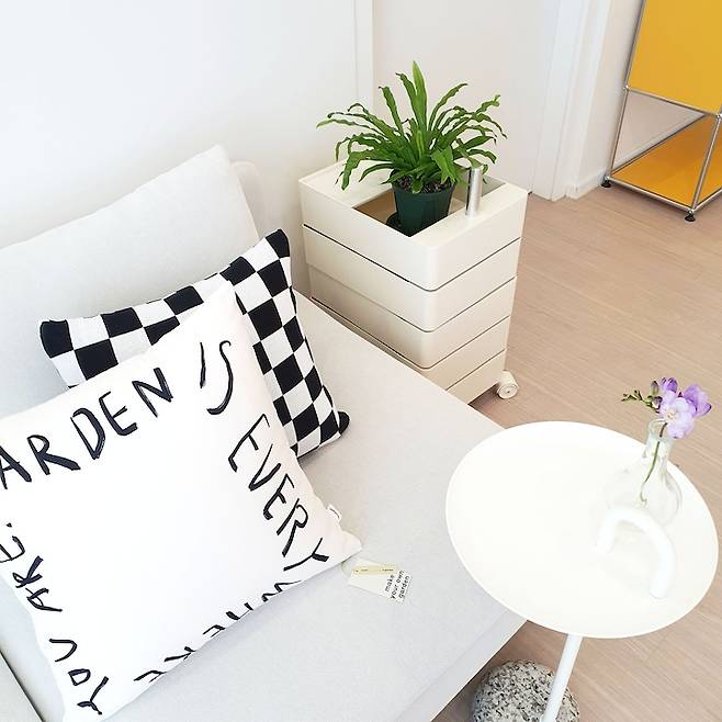 그리고 가구와 소품으로 비비드한 컬러 포인트를 군데군데 넣었습니다. 밝고 경쾌한 컬러를 보면 기분이가 너무 좋아져요.