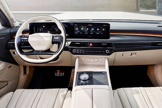 K8은 노블레스 라이트 트림을 기반으로 고급 내외장 사양을 강화한 베스트 셀렉션 트림을 선보였다. 18인치 전면가공 휠, 이중접합 차음 글라스, 앰비언트 라이트 등으로 프리미엄 감성을 더했고, 서라운드 뷰 모니터와 후측방 모니터, 원격 스마트 주차 보조 등 실사용자 중심 기능도 기본화됐다.