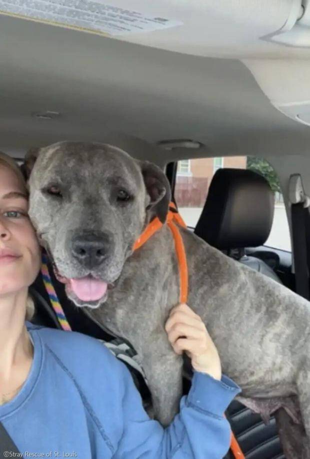 회색 핏불은 로크만과 그녀의 구조 파트너인 나탈리 톰슨 대원이 다가오자 불안해하며 더 크게 짖어댔다.