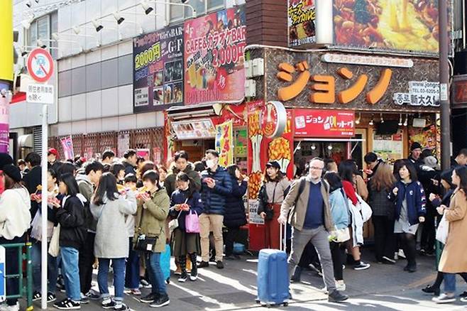 ‘도한놀이(渡韓ごっこ)’라는 신조어가 탄생할 정도로, 한국 여행 대신 신오쿠보에서 한국 문화를 체험하는 것이 유행이 되었는데요. 한국식 인테리어를 적용한 레스토랑에서 식사하거나, 한국 아이돌 관련 상품을 구입하며 한국 여행의 느낌을 재현하는 것이 특징입니다.