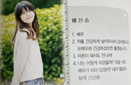 졸업사진 속 배이는 청순한 외모와 상큼한 미소가 돋보인다. 장래희망에 배우가 적혀있는 부분이 눈에 띈다. 배우를 꿈꾸던 소녀는 K팝 아이돌로 성장했다.
