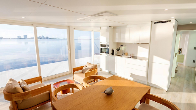 일반적인 요트와 달리 이 요트는 '집'의 역할을 한다. 거실, 가전제품이 구비된 주방, 욕실, 넓은 침실을 갖추고 있다. 바다 위 떠다니는 집이다.