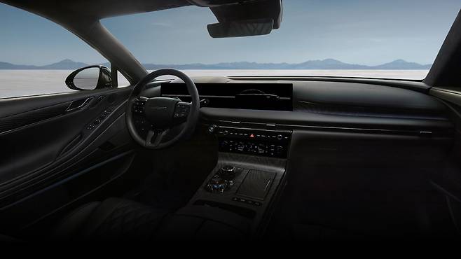 실내는 더욱 압권이다. 제네시스는 공조 및 트렁크 등 버튼류, 도어와 콘솔 등 스위치 및 장식류, 스티어링 휠 및 패들 시프트까지 모든 것을 블랙으로 구현했다. G80 블랙 전용 리얼우드 가니시, 시트 가죽, 시트 퀼팅이 적용되어 차별화된 고급감을 선사한다. 27인치 통합형 와이드 디스플레이에는 전용 애니메이션과 그래픽 테마까지 새롭게 구현했다.