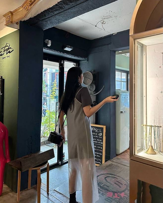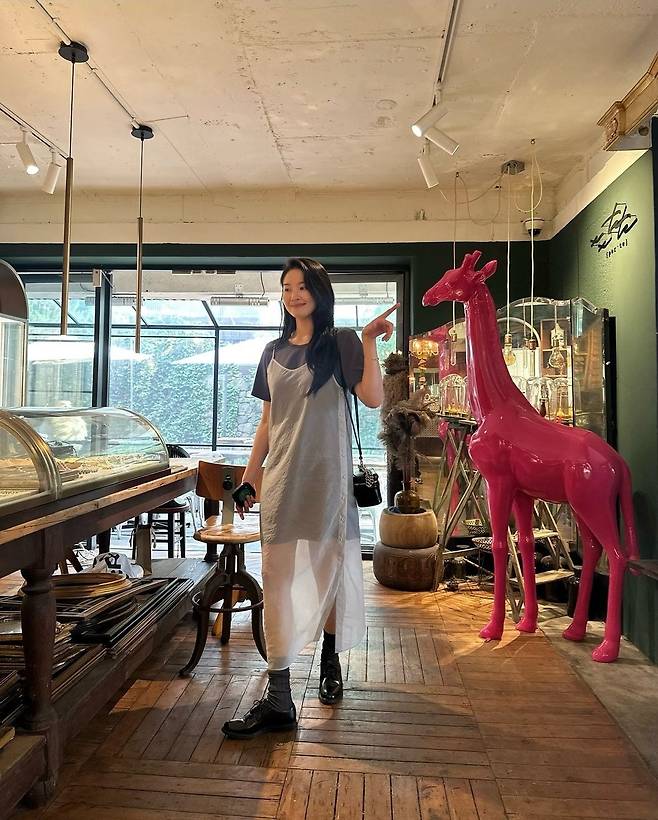 그룹 신화의 멤버 전진의 아내 류이서가 1일 인스타그램에 "약속 가기 전에 근처 카페 밖에 자리 앉았다가 더워서 바로 안으로 ..🙀🩵"라는 글과 함께 여러 장의 사진을 게재했습니다.