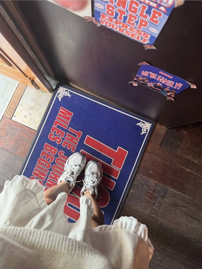 여기에 실버 디테일이 돋보이는 뉴발 운동화로 캐주얼한 분위기를 완성했습니다.