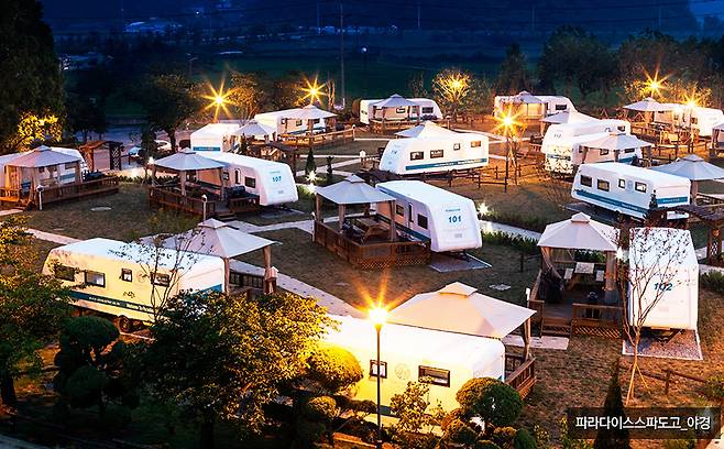 캠핑과 온천 겨울 여행의 별미인 두 요소를 모두 잡을 수 있는 여행지도 있다. 바로 충남 아산 파라다이스 스파도고다. ‘캠핑장 옆 스파’라는 별명처럼 카라반 캠핑장과 스파를 동시에 갖춘 여행지다. 4인용부터 6인용까지 총 50동의 카라반이 스파 옆에 캠핑 존을 이루고 있다. 카라반은 겉으로 보기엔 아담해 보이지만 침대, 주방, 화장실, 소파 등을 구비하고 있어 생활에 불편함이 없다. 스파에는 온천욕을 하며 맥주를 마실 수 있는 아쿠아 바를 비롯해 다양한 종류의 시설이 구비돼 있어 하나하나 도장 깨는 재미가 쏠쏠하다.
