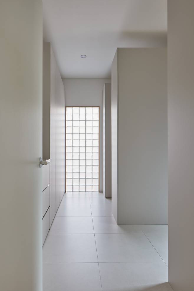 주거를 보조하는 공간도 효율적으로 계획하는 데 중점을 뒀다. 먼저, 세탁과 수납이 가까이서 이뤄질 수 있도록 드레스룸과 세탁실을 함께 배치했다. 대로변에 면하다 보니 외부 시선으로부터 프라이버시를 확보하면서도 충분한 채광을 끌어올 수 있도록 유리블록을 설치했다. 세탁실에서도 테라스로 바로 나갈 수 있는 별도의 문을 마련했다.