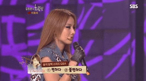 지난 2017년 6월 SBS '김정은의 초콜릿'에는 게스트로 이효리가 출연했습니다. 당시 진행자였던 김정은은 스피드 Q&A를 진행하며 이효리에게 "김정은과 마주하는 것이 편하다, 불편하다"는 질문을 했고, 이에 이효리는 "좀 어색하다"며 멋쩍은 미소를 띠었습니다.