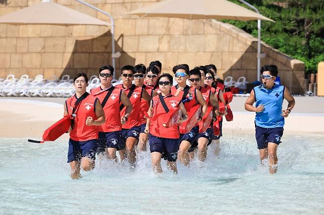 에버랜드의 워터파크 캐리비안 베이가 본격 여름 휴가철을 앞두고 몰놀이 안전을 책임지는 라이프가드들의 에너지 넘치는 훈련 현장을 4일 공개했다. 이날 훈련에는 전문 라이프가드들의 수상 인명구조, 심폐소생술(CPR) 등 다양한 모의훈련과 교육이 진행됐다.