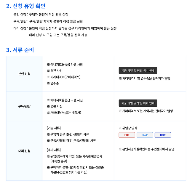 인터넷 사용이 어렵거나 거동이 불편한 경우, 전국 주요 가전제품 판매점에서 ‘대리 신청 서비스’를 이용할 수 있습니다. 대리 신청 시에는 위임장과 가족관계증명서(가족인 경우), 본인서명사실확인서 또는 신분증 사본 등 추가 서류가 필요합니다. 서류 요건은 본인 신청과 동일하므로 준비를 철저히 해야 합니다.