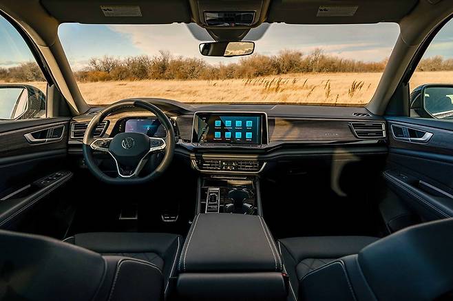 전장 약 5.1m, 전폭 약 2m에 달하는 아틀라스는 폭스바겐 그룹의 MQB 모듈러 플랫폼을 기반으로 한 최상위 SUV다. 경쟁 모델들이 3열을 ‘옵션’처럼 제공하는 것과 달리, 아틀라스의 3열은 성인도 장시간 앉을 수 있을 만큼 여유롭다.