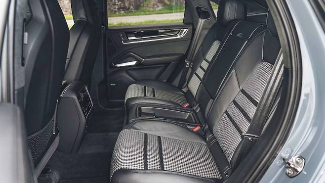 이러한 문제를 제외하면, 2025년형 포르쉐 카이엔 GTS의 실내는 전반적으로 편안했습니다. 옵션으로 제공되는 어댑티브 스포츠 시트 플러스는 지지력이 뛰어나 스포티한 주행 중에도 몸을 잘 잡아주고, 장거리 주행 시에도 편안함을 유지합니다. 하지만 시트의 소재 선택은 다소 아쉬웠습니다. 프리미엄 직물과 고무 같은 질감이 혼합되어 있는데, 미끄럼 방지 효과는 좋지만 가죽의 고급스러운 느낌이 부족했습니다. 그럼에도 불구하고 시트 자체의 편안함은 훌륭했습니다.