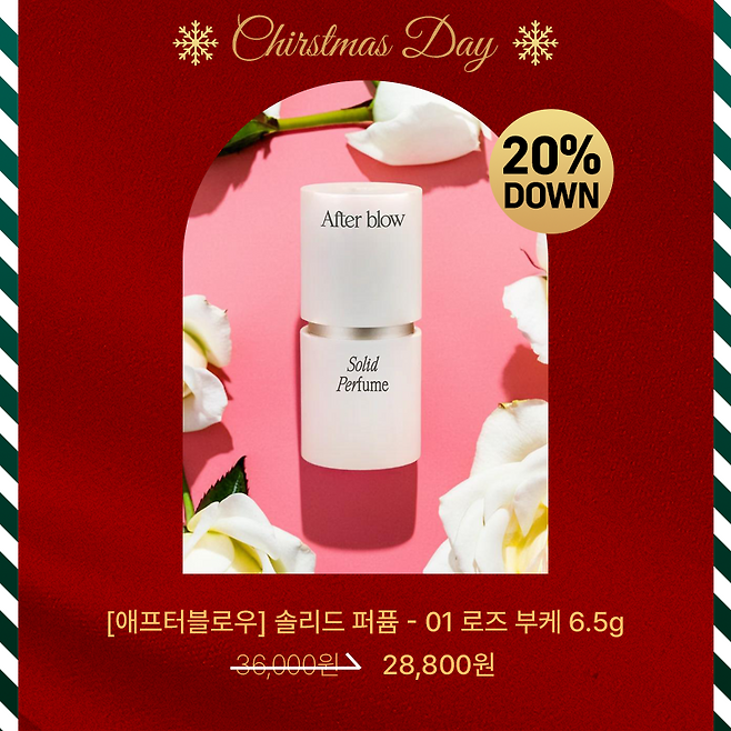마지막 크리스마스 선물 추천은바로 고체 향수! 애프터블로우의 솔리드 퍼퓸이야.썸남, 썸녀에게 선물하면 좋을 크리스마스 선물로 추천해.