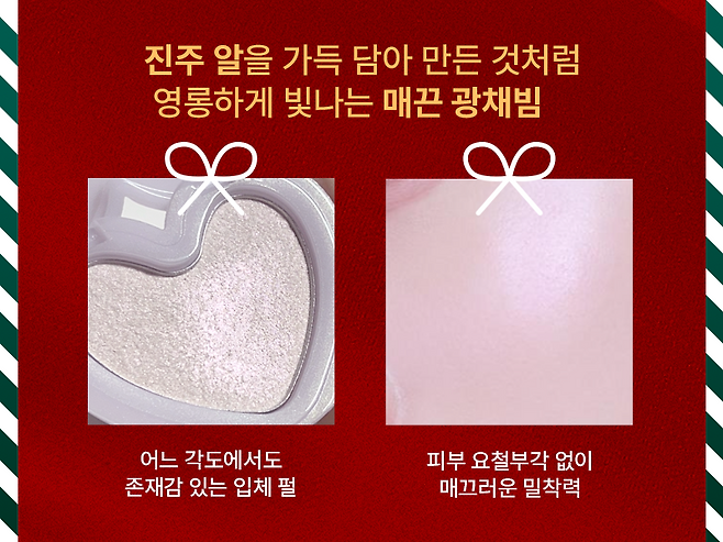 한 겹만 발라주면 마치 물광 메이크업을 한 것처럼 진주알 광채가 은은하게 빛나 얼굴의 입체감을 살려주고