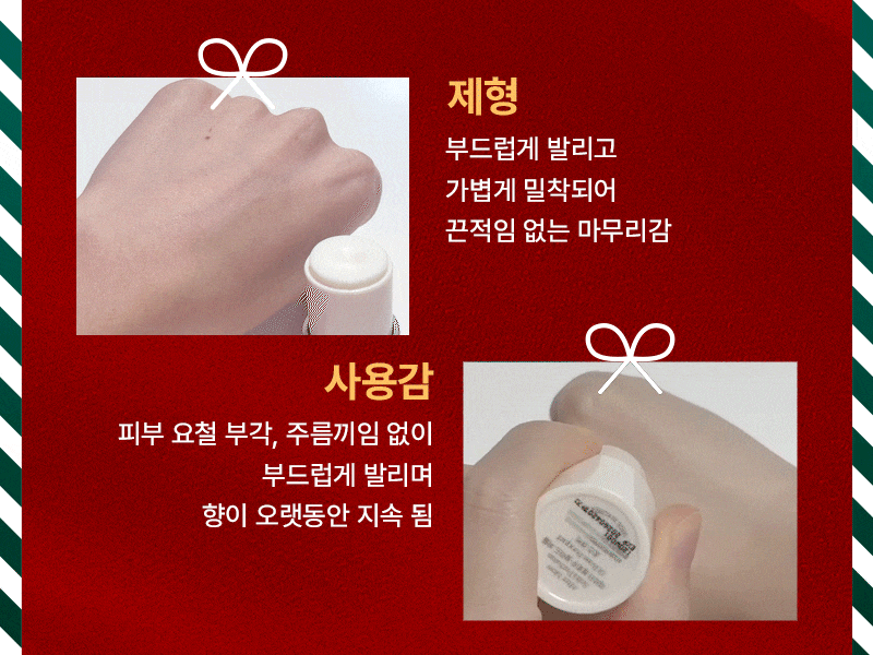 바르기 전과 후를 비교해보았을 때 확연한 존재감을 느낄 수 있어.이게 바로 크리스마스 선물로 강력 추천하는 이유야.