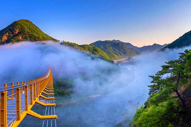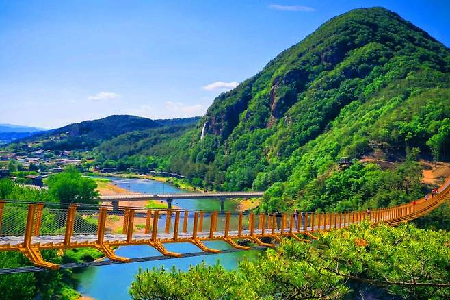 2022년 개통되어 쾌적하게 이용할 수 있으며, 금강 상류 물줄기가 흐르는 맑고 깨끗한 모습을 감상하며 트레킹을 즐길 수 있습니다. 주탑이 없는 무주탑 형태로 설계된 만큼 다른 다리보다 출렁거림을 강하게 느껴 아찔함을 만끽할 수 있습니다.