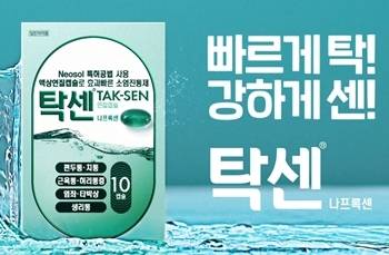 탁센은 비스테로이드 소염진통제로, 진통 및 소염 작용에 효과를 보여 감기로 인한 인후통·두통 등에 자주 쓰입니다.