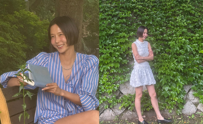 김나영이 블랙 슬리브리스와 데님 팬츠로 완성한 스타일링이 눈길을 끈다. 체크 패턴의 토트백을 포인트로 활용해 심플한 코디에 세련된 포인트를 더했다. 블랙 부츠와의 매치로 전체적인 룩의 완성도를 높이며 도시적인 매력을 연출하고 있다.