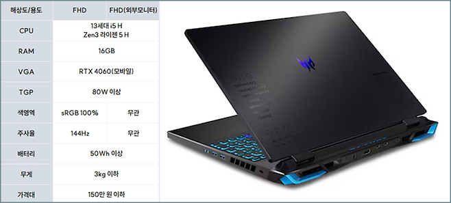 인텔 13세대 i5, AMD Zen3 라이젠 5 + 16GB + RTX 4060