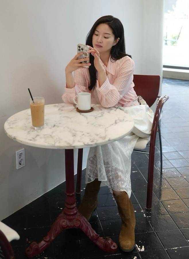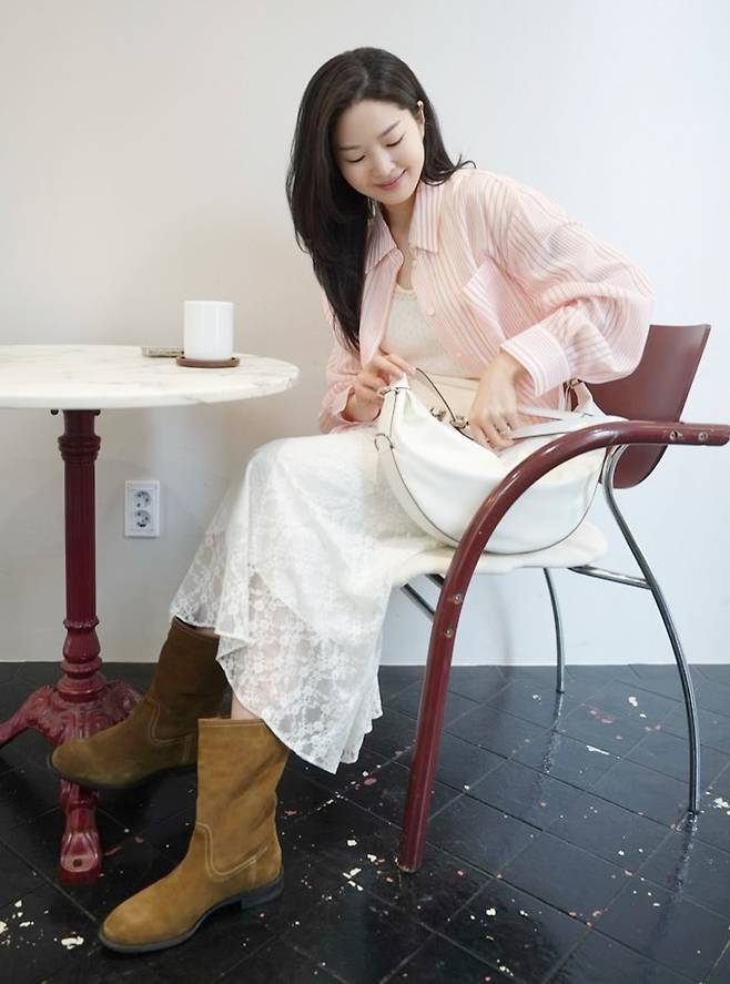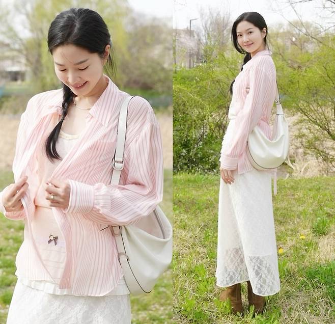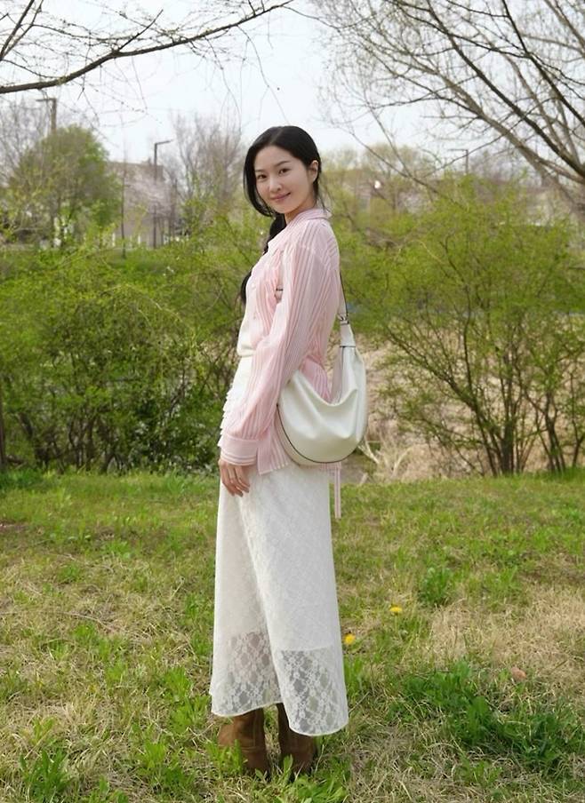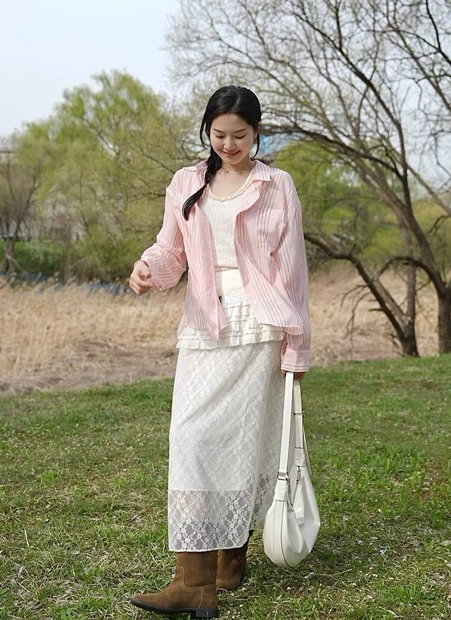 공개한 사진에서 류이서는 여성스러운 시스루 티어드 스커트에 민소매 티셔츠의 화이트 셋업에 핑크 스트라이프 셔츠를 걸친 나들이룩으로 화사하면서도 러블리한 미모를 드러냈다.