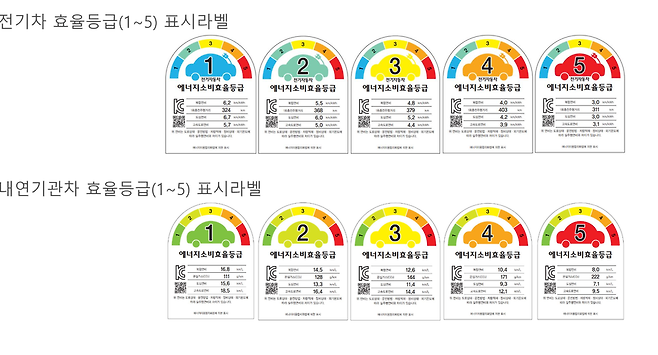 전기차 전비가 kWh당 5.9km 이상이면 1등급, 5.1~5.8km는 2등급, 4.3~5.0km는 3등급, 3.5~4.2km면 4등급, 3.4km 이하면 5등급이 부여되는 방식이다.
