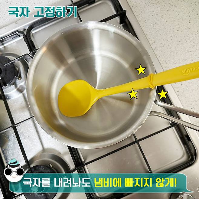 요리를 하다 보면 국자를 잠시 내려둬야 하는 상황이 생기는데요. 자칫 잘못 두면 냄비 속으로 푹 빠질 때가 많더라구요. 유유.