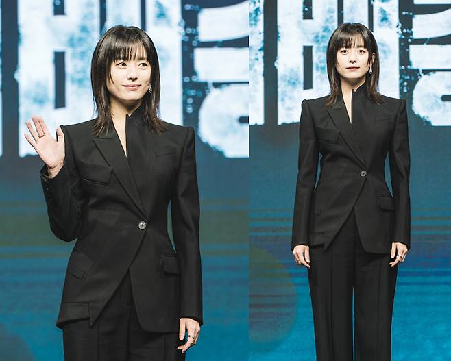 배우 한효주가 8일 오전 서울 영등포구 콘래드 서울에서 열린 디즈니+ 오리지널 '지배종' 제작발표회에 참석했습니다.