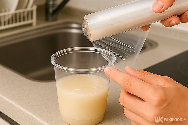 마지막으로 입구를 랩으로 덮고, 구멍을 4~5개 뚫는다. 냄새가 밖으로 퍼지면서 벌레도 안으로 들어가야 하기 때문에 구멍은 빨대 크기가 적당하다.