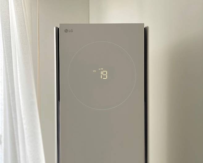 타워에어컨의 상징이었던 전면 원형 서클이 디지털 서클로 바뀐 것. 이제까지 봤던 어떤 에어컨보다 미니멀한 디자인이다. 전원을 켜지 않은 상태에서는 에어컨이라고 믿기 어려울 정도다. 매끈한 도자기처럼 심플해진다. 그냥 인테리어 오브제처럼 보일 정도다. 군더더기 없는 미니멀 인테리어를 꿈꾸던 사람이라면 무엇보다 반가울 만한 외형 변화겠다.