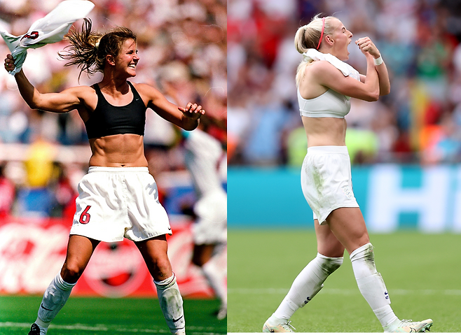여자 축구에서 최초로 상의탈의를 선 보인 선수가 있습니다. 미국 축구 선수 브랜디 채스테인(Brandi Chastain)인데요. 그는 1999년 7월 10일, 미국에서 개최된 FIFA 여자월드컵 결승전에서 역사적인 세리머니를 선보였습니다.